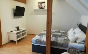 Our mansard apartment invites you to get to know our city of Altötting. The apartment with about 50 square meters has a bathroom with shower and toilet. The children's room is equipped with bright furniture and a stable (up to 100kg) bunk bed (90x200). In the hallway there is a tea kitchen with a microwave and refrigerator, toaster, kettle and Nespresso machine. You can relax and unwind in the cozy living room. There is a small desk next to a dining table with 4 chairs.About pets:No pets allowed.About checkOut:Check out before 11:00 AM.About children:Adults only.About checkIn:Check in after 4:00 PM.About smoking:Smoking is not permitted.About events:No events allowed.