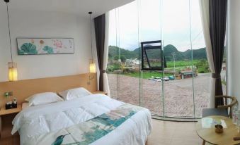 房間的朝向很好,落地窗外即是大片荷塘,遠處山巒起伏,清晨薄霧瀰漫,使人心曠神怡!房間內以荷為主題,佈置得挺有文藝範,雖然面積不大,但設施齊全。樓下大餐廳吃飯很方便,菜的味道不錯,價錢合理!最方便的是景區入口就在馬路對面,下次還得訂這家民宿。