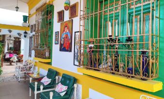 La decoración de su hermosa sala colonial, las habitaciones te transportan al pasado con una decoración única y clásica. Muchos colores y cuadros, cómodas camas, excelente el restaurante con un menu a la carta, está a un lado de la iglesia y del parque principal, maravilloso todo.
