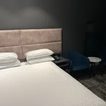 Proses check-in mudah dan cepat, kamarnya luar biasa, ukurannya pas, tempat tidurnya sangat nyaman, dan kamar kami bahkan memiliki beberapa jendela menghadap pelabuhan di kejauhan.
