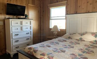 Four cozy bedrooms include two queen rooms with a shared bath, a double room, and a bunk room with a twin-over-full bed and trundle.