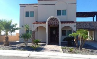 Four spacious bedrooms with views of the dessert and ocean. Large kitchen fully equipped and a nice dining area. Comfy living room area. Master bedroom counts with its own bathroom and smart tv. There is also a shower outside of the house where you can rinse off when you come back from the ocean or pool. Upstairs you'll find a large balcony area with a view to the ocean and mountain side, this part of the house is perfect for late night bonfires or bbq's to watch the sunset. This house is perfect to have a relaxing get away, where you can enjoy each pool areas and the 10 km of ocean side.About pets:No pets allowed.About children:Adults only.About smoking:Smoking is not permitted.About events:No events allowed.