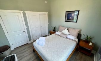 The main level bedroom is a tranquil retreat, complete with a comfortable queen-sized bed adorned with crisp linens and soft pillows. Decorated with tasteful touches, it offers a serene atmosphere for a restful night's sleep.