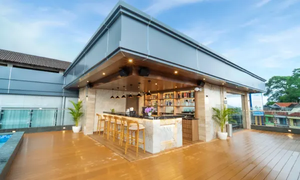 Lokasi hotel sangat strategis, sarapan enak, ada bar dan kolam renang, serta staf yang ramah.