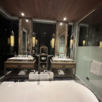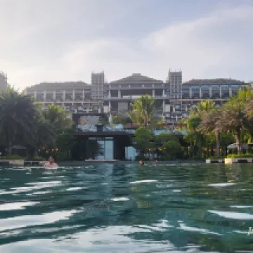 Hotelnya super besar dan megah! Saya memesan vila dua kamar tidur, dan proses check-in serta sarapan dilakukan di bangunan terpisah, yang jaraknya agak jauh dari bangunan utama, kolam renang, dan pantai. Kamarnya cukup luas, fasilitasnya lengkap, dan kualitas airnya lumayan. Saya menginap dua malam, shower filternya agak menguning. Sarapan sebagian prasmanan, sebagian lagi ala carte, standar saja, tidak terlalu istimewa. Restoran Jepang makanannya enak, tapi harga di restoran Baiyun agak mahal. Stafnya ramah dan antusias.