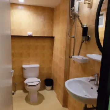 Room old and materials like bedsheets old. but staff helpful. Told staff need clean pillow and bed sheets, they will try to give best clean ones. The toilet some things old and have stain, like the shower soap bottle. May be small items in room can change as some old with stain. But room price is low.