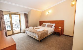 Сегодня в 21.30 вылетаем из Батуми домой. Продлили номер до 18 часов. Что могу сказать об отеле: находится в центре старого города. Здание старое, но отреставрированное снаружи. Внутри тоже не плохо, но мрачновато. Темная, старая мебель, ковролин серый на полу. Убирают номер через два дня на третий. Бутылка воды на человека, чай, кофе, шампунь, кондиционер, гель для душа и еще дают одноразовые зубные щетки. Небольшой холодильник, телевизор, кондиционер. Последний не совсем корректно работает, но я его настроила под себя. Холодильник тоже не работал. Заменили на новый. Есть маленький балкончик с двумя стульчиками, на которых мы сушили купальники и утром пили кофе. Столиками служат приборы от сплит-системы😂. В ванной протекает потолок ( видимо когда над нами моются), бросали на пол полотенца, спасало. На большой кровати странный матрас, мне было не очень удобно спать. Когда ложишься, будь то проваливаешься в яму, но когда встаешь, яма исчезает🤷♀️. Постельное белье и полотенца белоснежные. В отеле ест небольшое кафе, но оно не работает, сказали некому работать. Это при их то безработице? Странно. С вечера можно заказать завтрак в номер, континентальный. Поблизости много разных едален, магазинов и сувенирных островков. Море в 10 минутах ходьбы. Все молодые люди, работающие на ресепшене вежливые, услужливые, внимательные. Цена за наш номер была не маленькая, но это объясняется расположением отеля и сезоном. В целом остались довольны.