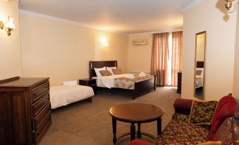 Отель неплохой, старый, древневековый мотив, но в ужасном запущенном состоянии, начиная от дверей входных, и заканчивая сантехникой, которая вся течет, в туалете всегда потеки воды,унитаз протекает,где-то снизу,душевой шланг брызжет во все стороны,невозможно мыться, горничные ходят кофе попивают, за 7 дней ни разу не зашли протереть пыль,и промыть пол,когда им сказали,они сразу напыжились,и готовы были порвать тебя за такое предложение, дали нам ведро и ванючюю тряпку,что б мы помыли пол сами,в баре когда позавтракаешь,посуду надо убирать самим туристам,ставить её на барную стойку,и протереть стол за которым ты отзавтракал,барменша очень невежественная,и грубая,на нас лаяла,как шавка, это были пытки для нас прийти на их ужасный,скудный завтрак, поэтому мы приняли решение завтракать в кафе,где были тебе рады и приветливы,хозяин Гурам,очень не простой и хитрый мужик,тоже может и закричать на туристов,если у него что либо потребуешь,типа того,почему горничные не заходят и не протирают хотя пол,вобщем никогда не селитесь в отеле Рикса 3*, я бы дала отелю 0*
