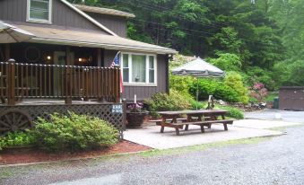The Riverfront Cottage is a perfect year-round getaway located along the relaxing banks of the Raystown Branch of the Juniata River. Minutes away from downtown historic Bedford, great restaurants, unique shops, stores, and Shawnee State Park. Sleeps 6 persons comfortably. The cottage has 3 bedrooms, 2 baths, central air/heat, fully equipped kitchen (no condiments), cable and smart TVs, high-speed Internet, washer/dryer, large river view deck, covered porch, gas grill, and private dock with ladder (ladder/railing removed in the winter). Enjoy seasonal activities- kayaking, fishing in the trout-stocked river, relaxing by the river, rafting (rafts not provided), and swimming. Four kayaks and life vests provided. Sit by the outdoor fireplace in the back and relax under the pavilion. Enjoy the other fireplace and covered swing overlooking the river, and eat and gather around the picnic table. Firewood provided. Inside cabin and outside areas not child proof. Hot tub on premises available April thru November. (Exact dates vary. If hot tub is out of service during your stay refunds are not offered, normal cancellation policy applies.) Major credit cards accepted. About pets:No pets allowed.About checkOut:Check out before 11:00 AM.About children:Children allowed: ages 0-17.Inside cabin and outside areas not child proof..About customRules:In the unlikely event the hot tub is not working prior to or during your stay, a full or partial refund will not be approved as a result of this..About checkIn:Check in after 4:00 PM.About smoking:Smoking is not permitted.Outside smoking permitted only..About minBookingAge:Minimum age to rent: 21.About events:No events allowed.