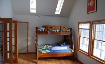 You will be hard pressed to find another property for rent like this one anywhere in the Midwest. You'll be sitting back on 50-acres of woods on the dunes overlooking a beautiful valley. In fact, you'll be surrounded by several hundred acres of woods as the adjacent properties are also un-inhabited forest. At the same time, you'll feel the lake breeze (Lake Michigan is only 3/4 of a mile away) and you'll be on a beautiful public beach in a 5-minute drive. Bring your dogs! You will also be close to tons of summer time activities within 30 minutes drive: golf (nearest course 1 mile away), hiking, horse-back riding, mini-golf, go-karting, dune rides/dune buggies, tubing, fishing, fruit-picking, amusement/waterparks (Michigan's adventure), summer festivals, and petting zoos.