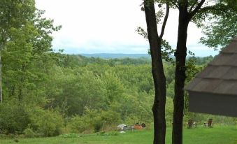The house sits on about 1-acre of open field which at the tip drops down into a valley. Our overlook point is one of the highest spots in the immediate area, so you will have a view overlooking the forest for as far as the eye can see. We've got a fire pit set up on the point, and you can sit here in the woods and still feel the Lake Michigan breeze (which is 3/4 mile to the East).