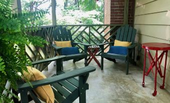 Thoughtfully renovated 2 bedroom, 1 bath cottage has everything you need for a comfortable vacation. Located on a quiet street in the heart of Black Mountain, surrounded by trees, landscaped gardens, and the sounds of chirping birds. Beautifully furnished and decorated with an eclectic mix of old and new, the cottage has all the amenities of a modern home. Enjoy a cup of coffee on the front porch, curl up with your favorite book by the fire, or just relax and enjoy the quiet . Cardinal’s View Cottage is within easy walking distance to Lake Tomahawk or shopping and dining in downtown Black Mountain. Easy access to I-40, and a short 15 minute drive to Asheville.