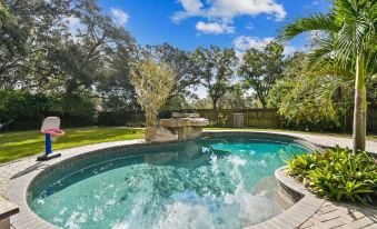 Bring the whole family to enjoy the huge out door (unheated) pool with a water fall, big screened in patio and PLENTY of room for the kids and dogs to run.