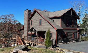 This spacious mountain home has enough room for 2 -3 families & kids! Kid area downstairs with game table! .7 miles to downtown Blowing Rock ( a 2 min drive)- it is possible to walk for those that can handle a hill or 2! This location is so close to everything Blowing Rock & the surrounding towns have to offer! Close to outlets for shopping & App Ski mountain is 3 miles away! This location is great for a big group that loves all the amenities of being close to downtown Blowing Rock. After a day of touring, & sightseeing you can come back to the lodge & make a great meal in the chefs kitchen & then soak in the hot tub on the deck! The main level has a king master suite with en-suite bathroom. There is also a powder room in this level , family room w/gas log fireplace & access to the wrap around deck w/ grill , hot tub & fire pit! The upstairs offers a king bedroom & a queen bedroom w/ a jack n Jill bathroom between the two. The lower basement level has a queen bedroom w/ set of twin bunk beds and a living area with a queen sleeper sofa! Great space in this cabin!About pets:Pets allowed: dogs less than 50 lbs per pet (limit one pet total).Please read/acknowledge rules for pets please!.About checkOut:Check out before 10:00 AM.About children:Children allowed: ages 0-17.About customRules:Pets- up to 50 lbs- NON shedding, do not let on carpeted areas alone, do not leave pet unattended pls crate (not provided)/NO puppies/cats;.Pets-please keep off beds and furniture-evidence of hair will result in additional cleaning or replacement cost of bedding,Check In/Check out instructions posted on fridge