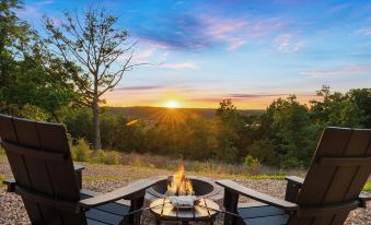 Wake up in the morning to coffee on our deck looking out over the Ozark Mountains. You'll fall in love with the exceptional views, the sounds of nature, and the stunning sunsets! End your day in the comfortable fire pit area or in the luxurious Hot Tub, perfectly situated to watch the sun set over the hills.