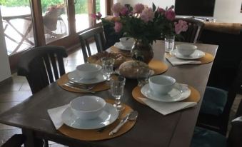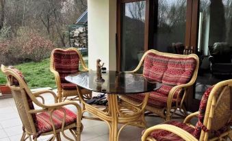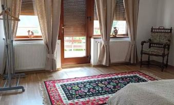 Villa with three bedrooms plus huge loft studio set on three floors, fully equipped kitchen, three bathrooms, one toilet/utility room, real log fire, balcony and 2000 sq metres land. Terrace with amazing views of the hills and mountains. 20 minute walk from the centre of Campulung, 10 minute from the train station. Great for walking in the surrounding hills, cycling, mountaineering, skiing, monasteries. One hour from Bran Castle, Piatra Craiului mountain reserve, 1and 1/2 hours from Brasov. Namaiesti and Corbii de Piatra monasteries are close by, Curtea de Arges monastery is 50 km away. Campulung and the surrounding are a hidden gem in the foothills of the Carpathian mountains, away from the overcrowded Valea Prahovei, easier to reach by car via the Bucharest-Pitesti motorway. It is only 2 and 1/2 hours by car from Bucharest. My property is a peaceful oasis in the middle of orchards where you can totally unwind in the comfort of a high quality modern villa.About pets:No pets allowed.About checkOut:Check out before 11:00 AM.About children:Adults only.About checkIn:Check in after 4:00 PM.About smoking:Smoking is not permitted.About events:No events allowed.