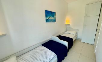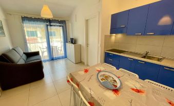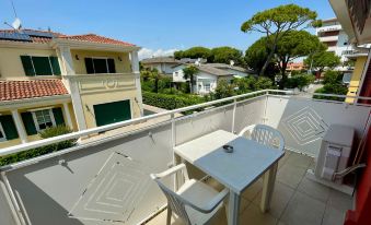 Apartment for up to six guests, located on the first floor of a one-storey house without lift, only 240mt from the beach. It is formed of a living room with a double sofa bed, a nice balcony, a kitchenette, a double bedroom, a bedroom with two single beds, and a full bathroom with a shower box. It comes with one uncovered parking spot. There's a shared laundry room for the whole residence. A/C is available at an additional cost (check below).°Photos are generic and representative of the accommodation type (furniture, décor and colors may vary)