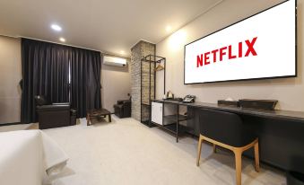 遅い時間でも対応してくれました。フリーの飲み物があるのでどうぞと(韓国語)たぶん言ってました。部屋が広すぎて1人だともったいないくらい。壁やドアは薄いのか?けっこう声や音は聞こえます。パジャマもありヘアアイロンもあり。なんならUSBコードなどもありました。五松駅からすぐ(5.6ふん)。
