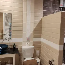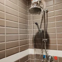 Saya menginap di villa yang luas. Kamar mandinya memiliki pemanas air instan, tetapi yang keluar hanya air hangat, membuat mandi menjadi sedikit tidak nyaman.