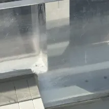 Kondisi kebersihannya mengkhawatirkan: bak mandi air panas tertutup noda yang tak terhapuskan, dinding terkelupas dan kabel-kabel terlihat, rak di kamar mandi berkarat dan lantai kotor, meja samping tempat tidur terlihat seperti bekas pakai 10 orang yang bisa diambil gratis di marketplace.
