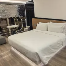 Semua kamar hotel berada di lantai 38 gedung apartemen. Lingkungannya sangat bagus. Kamar kapsul ruang angkasa yang saya pesan memiliki jendela tertutup. Kamar ini unik karena Anda dapat melihat pemandangan sungai yang indah. ***a dekorasinya sangat modern dan fasilitas internalnya sangat mewah, tetapi Anda harus memperhatikan pencegahan nyamuk. Anda dapat melihat Raffles City dan Stasiun Chaotianmen di Jalur 1 segera setelah Anda keluar.
