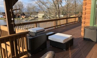 Beautiful custom built waterfront log house perfect for family reunions, large group gatherings, Furniture Market groups, Barbecue Festival groups and fun on the lake. Close to High Point, Charlotte, Greensboro and Winston Salem. Home is open with lots of windows and glass doors with amazing view of sunset. This home has been designed to accommodate friends and family members for a resort-style vacation. We do allow weddings and parties at the property. Additional adjacent lot available for events parking.About pets:No pets allowed.About checkOut:Check out before 11:00 AM.About children:Children allowed: ages 0-17.About customRules:we do allow our property for party and events only with host permission. Number of guest should match number booked. No visitor allowed ..About checkIn:Check in after 4:00 PM.About smoking:Smoking is not permitted.Fine up to $399 cleaning.About minBookingAge:Minimum age to rent: 21.About events:Events allowed.Allowed with itinerary and advance permission.