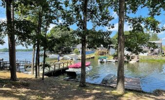 We had a great time at this lake house. The house itself was absolutely perfect for our stay, which included fishing for the men and lazy/relaxation for the ladies. The dock was perfect for our 24ft SeaArk (public boat ramp was about a 5-10 minute boat ride from the house) and came with built in boat bumpers. Fishing from the dock itself proved to be our 4 year-old's highlight of the trip. There were plenty of brim and blue gill. There is also a free public splashpad park about 5/10 minutes away near the local elementary school, which was a hit. The house came with everything needed to cook, but Lexington to the north was our go to for dinner. We also made a trip down to Badin and ate at Tho's Pizza and Subs. We don't recommend the pizza, but rather the low Mein, teriyaki, and pad thai. We were so impressed, we went two nights during the week. We had four adults, a toddler, and a 8 month old and found there was plenty of space. The porch was peaceful and the neighborhood was quiet. This place is a gem for those looking to just relax and access the lake. We highly recommend!