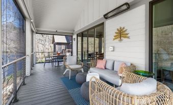 SUPER COZY, modern luxury house on river front property with HUGE screened-in back porch WITH HEATER overlooking the Tuckasegee River.