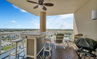 Out on the ocean-view balcony is a small dining set as well as additional outdoor furniture seating for the whole family. On the sunset balcony is a Weber electric grill, A Polywood bar with seating for four and two Polywood Adirondack chairs set up to enjoy the beautiful Florida sunset with the international speedway / river back drop.
