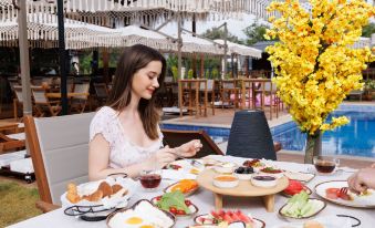 Anda dapat menikmati hidangan di A la Carte Restauran yang melayani tamu dari Kekova Garden Village , atau mampir di toko roti/camilan.Berbaurlah dengan tamu lainnya di perjamuan gratis, yang diadakan pada hari setiap hari. Akhiri hari Anda dengan menikmati minuman di bar/lounge.