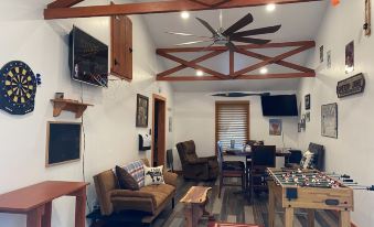 we are 1/4 mile from Sullivan Beach and boat launch on Houghton Lake. 5 minutes to trails that lead you to Leota, St.Helen, West branch and more. Enjoy year round fun on Houghton lake. Hang out in the game room or just relax at the fire pit and enjoy the sounds of nature, very private with lots of room for parking. Pets are always welcome and there is a 50.00 pet fee.About pets:Pets allowed: limit 2 total.About checkOut:Check out before 11:00 AM.About children:Children allowed: ages 0-17.About customRules:A 150.00 fee may be imposed if house is still occupied after 11:am. Fee is to rehouse guest if the required time is not allowed to have ready..You will also be responsible for the 200.00 cancelation fee.About checkIn:Check in after 3:00 PM.About smoking:Smoking is not permitted.About minBookingAge:Minimum age to rent: 23.About events:No events allowed.