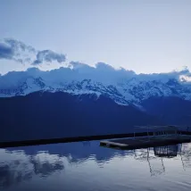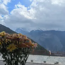 Hotel ini terletak tepat di depan pegunungan bersalju. Para pelayan, Yuanyuan dan Xiao Chen, sangat perhatian dan ramah. Mereka bahkan mengantarkan sarapan ke kamar kami di pagi hari. Mie beras saat sarapan ternyata sangat lezat. Hotel ini memiliki staf anjing yang menggemaskan, termasuk Tudou. Fasilitas hotel lengkap dan sangat bersih. Mereka menyediakan perlengkapan mandi sekali pakai. Ketika kami pergi, pelayan bahkan memberi kami hadiah kecil. Kami cukup beruntung untuk melihat Bima Sakti, pegunungan bersalju yang diterangi cahaya bulan, dan matahari terbit keemasan di pegunungan bersalju (bahkan di hari berawan). Saya pasti akan memilih untuk menginap di sini lagi lain kali.