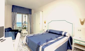 Beautiful hotel, when you walk in, it all looks very clean with lovely tiles that attract your attention. Everywhere is spotless. We were on the 1st floor and their was a staircase that rose from the reception area, or there was a lift, if you were feeling lazy. We had a terrace style area, but there weren't any chairs or a table on there, which would have been nice to sit out. The bedroom was large and had everything we needed. The shower was a cubicle with a large sink. We had dinner there the first night, which was very good. You could have a 3 course meal but we opted for the steak, and the Gnocchi which were good. The breakfasts were very good also and the staff were lovely. You could also eat al fresco for breakfast. Liked the fact that La Pagoda was over the road, where we spent 2 nights and had excellent meals with lovely views. We had free use of beach beds. The staff on the reception were really helpful. Free car parking in the private car park next door. Excellent hotel and would certainly recommend, if you are in the area.