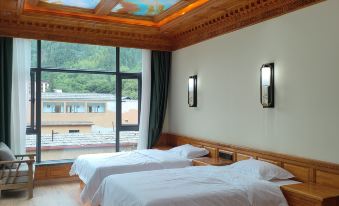 小院兒挺寬敞,方便停車。房間是藏式裝修,有民族特色,非常乾淨整潔。老闆特別熱情,和店員小夥兒一起幫我們搬行李。樓下可以就餐,味道不錯,價格實惠。推薦!!