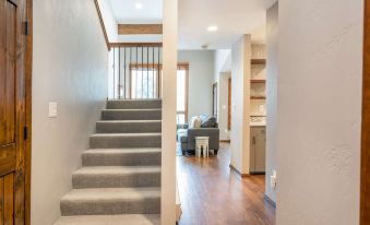You’ll immediately feel at home upon entering this comfortable mountain residence. The main level features an open living and dining room with access to the outdoor patio. Curl up in front of the gas fireplace as you watch your favorite shows in the living room or step out onto the patio to enjoy the Colorado air. The patio is equipped with a gas grill and table seating for 2 and looks out onto the beautiful Eagle Vail golf course with enough yard space of your own to enjoy with friends and family. Create your own meals in the fully equipped kitchen, which features granite countertops, stainless appliances and bar seating for 4 while the dining room has space for 4 guests. The half bath is located on this level and includes a full size washer and dryer for your convenience.