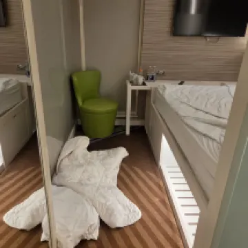 my room wasn't made when I arrived. The sheets, duvet were scattered on the floor and the desk had used coffee mugs. I was moved to a new room but they did not refill the shower gel (it was completely empty) in that room. You can hear pipes really loudly when other rooms used the water.