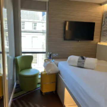 Üç günlük Edinburgh gezim için bu otelde konakladım. Her açıdan çok rahat bir konaklama geçirdim. Konumu Haymarket tren ve tramvay istasyonuna 5 dk. Old town’a yürüyerek ulaşmak mümkün. Odalar küçük ve kompakt ama klostrofobik hissetmiyor. Sessiz ve sakin bir yerde. Resepsiyon görevlileri yardımseverdi. Checkout’tan sonra bagajı sizin için ücretsiz emanet alabiliyorlar. Yemekleri denemedim ama otelde cafe ve kahvaltı seçeneği de var. Ayrıca odada size ikram edilmiş iki şişe su bulunuyor ki yolculuk ardından odaya geldiğimde bu benim için oldukça cömert ve iş kolaylaştırıcı bir ikramdı :) Genel olarak çok keyifli ve güvenli hissettiğim bir konaklama oldu.