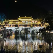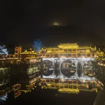 Bosnya sangat baik dan hotelnya berada di lokasi yang bagus. Selain bagus untuk menikmati pemandangan malam, tempat ini juga cocok untuk mengunjungi kota kuno. Untuk sebuah homestay, tempatnya relatif bersih dan higienis, AC-nya memadai, dan nyaman untuk sarapan di lantai bawah. Kota kuno itu terang benderang di malam hari. Sangat menyenangkan untuk makan sesuatu di balkon hotel sambil mendengarkan penyanyi yang ada di bar. Kota kuno di pagi hari mempunyai suasana yang unik, tenang, nyaman dan penuh pesona. Kota Kuno Fenghuang layak dikunjungi! Hindari juga lubang Kota Kuno Furong!