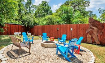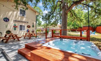 Beautiful Country Oasis Haus close to all the fun and has everything to make your stay in Fredericksburg the very best! Plenty of room for the entire group! Amazing outdoor space includes pool with waterfall, giant 7 person hot tub, fire pit area, huge deck with picnic tables, game area and giant oak trees. Inside has a beautifully decorated rustic theme with a big kitchen, master bed-bathroom suite, cozy fireplace, TVs in all bedrooms, luxury linens and soft beds. Pet friendly! Just added, 7 brand new cruiser bikes included with the house! Cruise around Fredericksburg by bike.