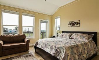 There is plenty of room for the whole family in our custom home with granite and upgraded finishings throughout. The upper balcony and lower deck gives this home outstanding views of the Gulf and the Bay/Inter-coastal waterways. The beaches on Treasure Island are beautiful, not crowded and are full of sea shells for the family to collect . If your family loves to fish, Treasure Island is renowned for its fishing. Close to the beach access. There is a fishing and crabbing pier on the bay side, community building, beach walk-over access. Close to Galveston for all the tourist attractions.About pets:Pets allowed: dogs and cats (limit 1 total).About checkOut:Check out before 10:00 AM.About children:Children allowed: ages 0-17.About customRules:Renters must empty all trash into neighborhood dumpsters prior to leaving..Any damage to the property must be disclosed to Owner prior to leaving the house..About checkIn:Check in after 4:00 PM.About smoking:Smoking allowed: in designated areas.About minBookingAge:Minimum age to rent: 25.About events:No events allowed.