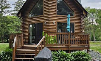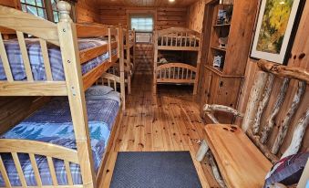 This premier two story Full Log cabin includes all amenities and sleeps up to 9 people, has a kitchenette, 1 ½ bathrooms, and a spacious back deck overlooking the Partridge Lake Channel Front.