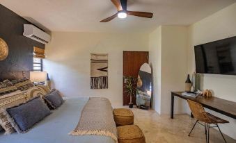 Our condo boasts a spacious living room with stunning views of the Caribbean Sea & the surrounding lush tropical greenery. The modern kitchen is fully equipped with all the amenities guests need to prepare delicious meals during their stay.