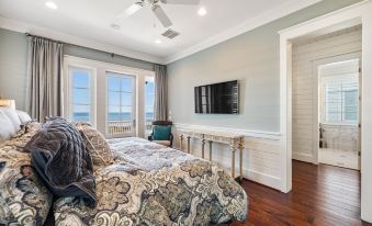 The main level features a great room overlooking the beach, kitchen with Sub-Zero/Wolf appliances, two covered porches, and an oversized bedroom suite. Upstairs features a large primary suite with a private beachfront porch as well as 2 additional bedrooms.