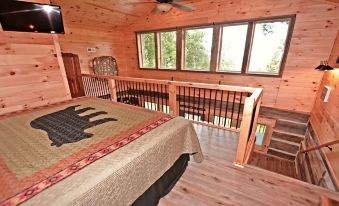 Lover’s Loft is a newly relocated and restored authentic antique log cabin from the 1800's in the Timberidge community of Gatlinburg. Nestled among old growth hardwood trees, this honeymooner cabin features a loft bedroom with amazing year round, long range views.