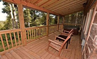 Enjoy your morning coffee rocking on the covered porch while watching for our “locals.” As an animal preserve, Timberidge is home to ample wildlife. There are several bear families, deer and turkeys that make it their home. You may even catch a glimpse of one of our beautiful eagles as they soar past. Relax in the hot tub to unwind and watch the sunset after a day of shopping, hiking and attractions.