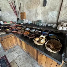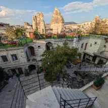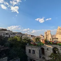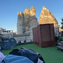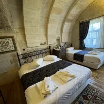 Letaknya di lereng bukit, tapi mobil bisa sampai ke pintu hotel untuk dijemput, jadi Anda tidak perlu menyeret barang bawaan Anda ke atas bukit. Anda dapat mengambil jalan berbeda ke kota Goreme di kiri dan kanan setelahnya berjalan keluar dari hotel. Ada beberapa restoran terkenal di dekat hotel. Ruangan akan terasa gelap dan lembab jika tidak ada jendela, jadi saya ganti ke kamar yang jendelanya menghadap ke luar, tapi tata letaknya jauh lebih kecil, tapi masih oke untuk ditinggali. Satu kamar berukuran 28 meter persegi dengan a koper dan yang lainnya adalah koper berukuran 25 meter persegi. AC di kamar langsung ke kepala dan tidak berhembus langsung ke kepala. Kamar mandinya kecil dan bersih. Sarapannya lumayan, dan ada pula yang diganti setiap hari. Pada dasarnya ada dua hingga tiga jenis mentimun, tomat, zaitun, dua hingga tiga jenis keju, dua jenis roti, buah ara kering, buah persik kering, selai, es susu. , air es, dan jus persik panas. Anda bisa meminta bantuan staf untuk membawa barang bawaan Anda saat masuk dan check out. Hotel ini tidak memiliki lift. Faktanya, ada banyak kamar di lantai pertama. Jika tidak nyaman untuk menaiki tangga, Anda mungkin bisa untuk membuat catatan untuk tetap di lantai pertama. Staf harus memiliki sedikit kontak dan tidak ada pengalaman khusus. Tetapi secara umum staf resepsi dan wanita pembersih cukup baik. Ada toko suvenir kecil beberapa langkah dari hotel. Jika Anda membeli lebih banyak, Anda bisa mendapatkan diskon dengan uang tunai, tetapi perlu diketahui bahwa toko tersebut tutup setelah pukul enam.