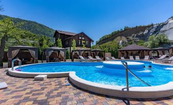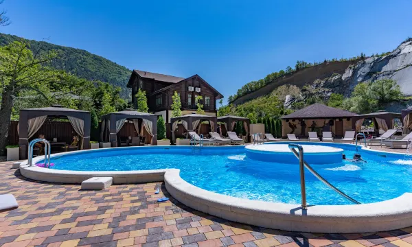 Были в августе 2023г. Номер 7500/сутки. Отличный, чистый, есть халаты, тапочки, мини наборы для ванной комнаты. Завтрак включен, скромный, но он есть. По размещению вопросов никаких. Обслуживание ресторана просто адовое! Официанты с лицами недовольными, видимо, мы пришли к ним домой! Просто неприятно! Кухня не справляется с заказами! Заказ нужно ждать от 60 минут! Цены очень завышены! Очень! Еда совершенно невкусная и пресная! Супы, салаты просто, как вата! Ещё и за цены, которые просто не отвечают вкусу блюд! Не советую! Просто невкусно! По бассейну вообще отдельная история! Летом в горах на бассейне совершенно нет зонтов! Никаких! На лежаках можно сгореть! Обслуживание на бассейне отвратительное! Видимо, с недовольными лицами набрали и сюда! Ждать долго заказы! Прямое солнце Вас спалит! Спрятаться некуда! Беседки платные, цена беседок космос! Есть детский бассейн, но дети купаются во взрослом и замечание никто им не делает! К сожалению, отдохнуть комфортно не получилось! Вход на бассейн не только для проживающих, но и для всех желающих! Большое количество людей и детей, бассейн маленький, на такое количество людей не рассчитан! Второй раз подумала бы-приезжать или нет! Обслуживание 0! Номера 5! Бассейн 0! Ресторан 0! Еда 0! Территория 5! Ресепшен 5 баллов! Спасибо за гостеприимно!