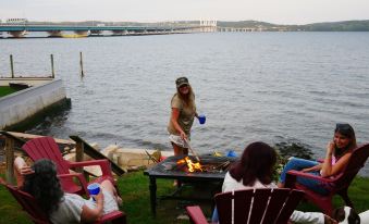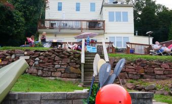 The 36 ft deck has amazing views of the brand new Mario Cuomo Bridge, and it is spectacular at night when all lit up! 2 bedrooms have river views and 1 has it's own balcony!About pets:Pets allowed.Upon approval from Host.About checkOut:Check out before 11:00 AM.About children:Children allowed: ages 0-17.Supervision required, property is right on river..About customRules:We want you to have fun & enjoy your stay but this is not a house to "party" in. We ask that the noise level stay down after 11pm..Let us know if you want a wood delivery. You are welcome to bring your own. The wood delivery is $65 for 2 Duraflame logs and 25-30 pieces of wood.,Pets are welcome upon approval by Host. Pet fee is $150 for one pet and $30 for each additional pet..About checkIn:Check in after 3:00 PM.About smoking:Smoking is not permitted.Smoking is allowed outdoors only!.About minBookingAge:Minimum age to rent: 21.About events:No events allowed.Not at this time during Covid..
