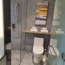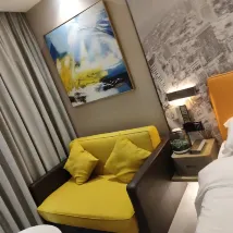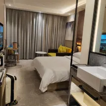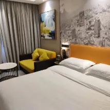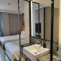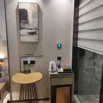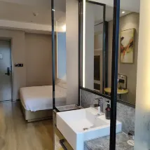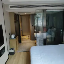 Hotel ini memiliki lingkungan yang elegan dan desain lobi yang stylish, membuat masa inap terasa sangat nyaman! Fasilitas kamar otomatis, dan TV pintar, AC, Wi-Fi, serta pembersih udara semuanya berfungsi dengan baik. Kamarnya bersih dan rapi, menjadikannya pengalaman menginap yang sangat menenangkan. Staf resepsionis, Ibu Zhang, sangat membantu dan proses check-in serta check-out sangat cepat.