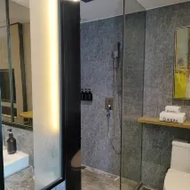Hotel ini memiliki lingkungan yang nyaman, kamar-kamarnya bersih dan rapi, dan detailnya dibuat dengan sangat baik. Perlengkapan mandinya pun lengkap, dan layanan resepsionisnya sangat ramah. Saya sangat puas dan akan kembali lagi lain kali.